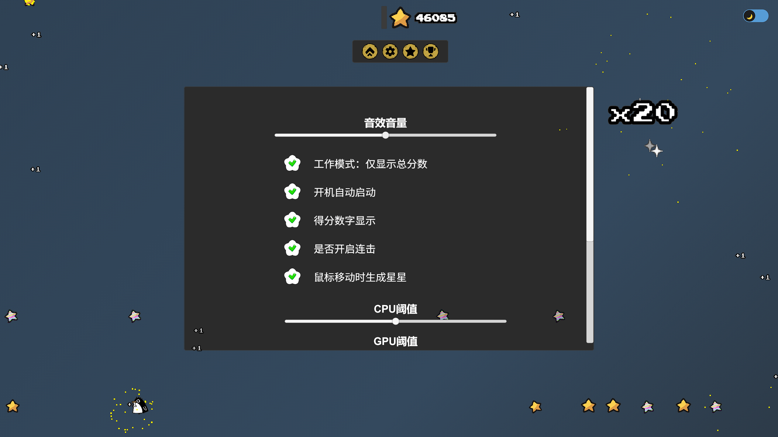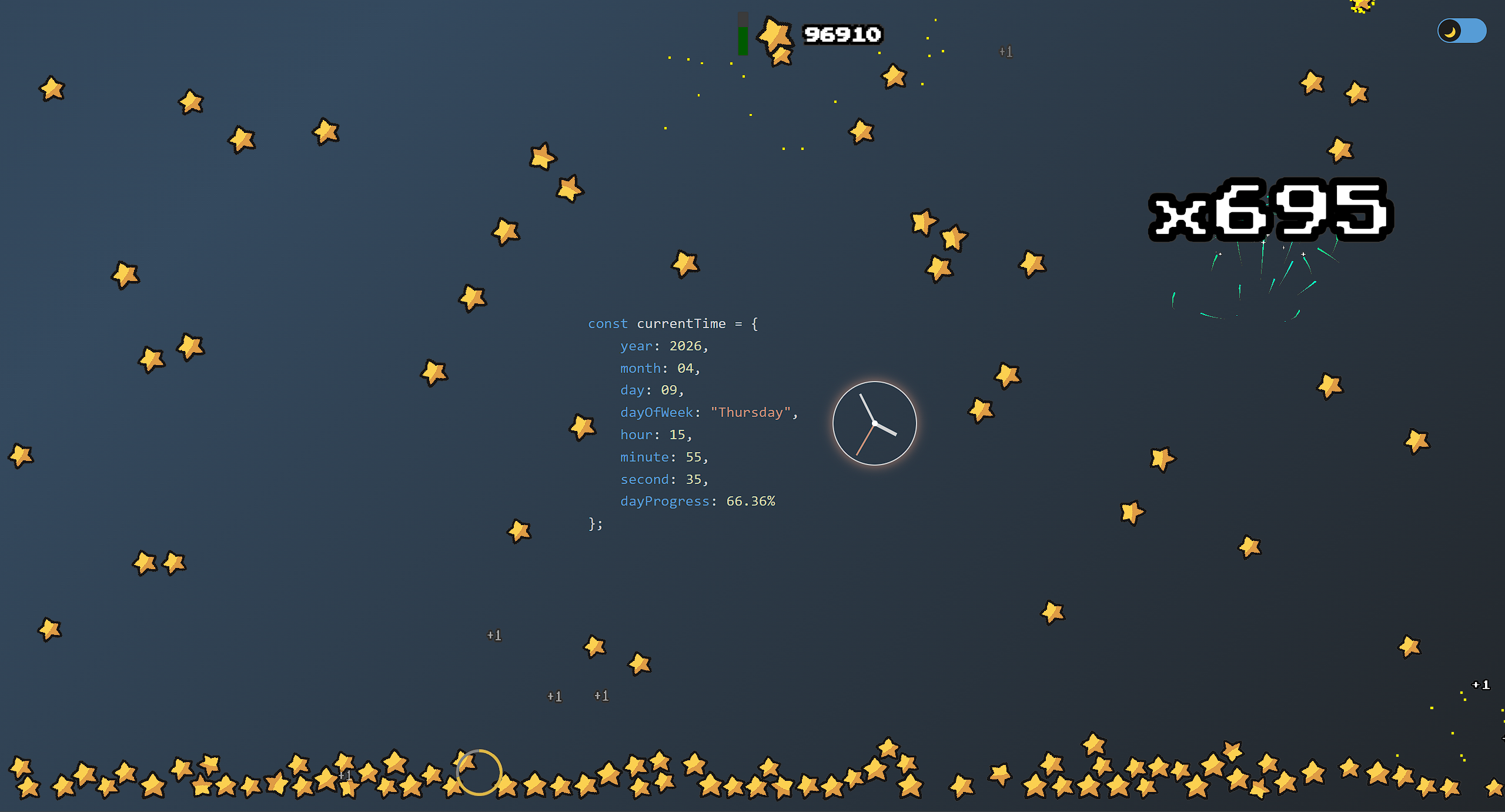 When you use your keyboard or mouse, you will earn points and cause stars to drop. Collecting these stars again will grant you even more points. Unlock more feedback by earning points!
